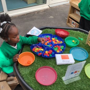 EYFS loved exploring the outdoor learning area. They built sand castles, practiced their balancing skills and sorted coloured bears into coloured plates.