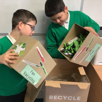 Our Eco Warriors have been inspecting Orchard’s pen recycling box. They ensured all pens were non-usable, emptying it into a large box ready for it to be recycled. Special message: please be conscious of plastics you use everyday and ways to minimize wastage!