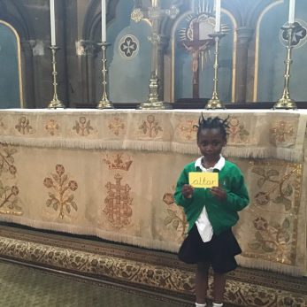 As part of the Year 1 RE topic on places of worship, they went to visit our local parish church St John of Jerusalem. They were particularly interested to notice the stained glass of Florence Nightingale which linked to our learning in the autumn term.