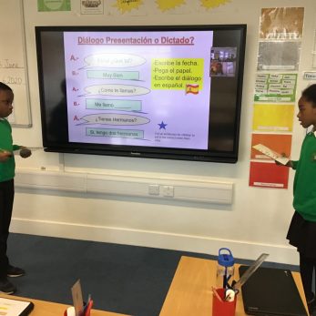 In today’s Spanish lesson , Year 4 and 5 children practised asking and answering familiar questions with their partner. They were able to ask and answer questions in Spanish about different topics and created a role play together.