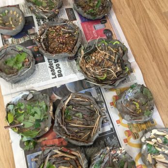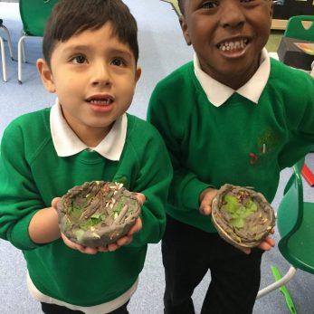 Last week, the children attending school read the book ‘Mama Built a Little Nest’ and learnt about all the different types of nests and how birds make them. They then foraged for their own natural materials and used them to create their own clay nests.
