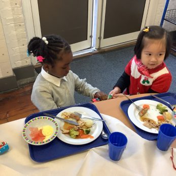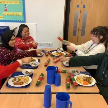 Children enjoyed their festive lunch of roast turkey with potatoes, mini sausages and stuffing, with a slice of chocolate log as dessert! They ended their lunch with a Christmas cracker to pull open with their friends.