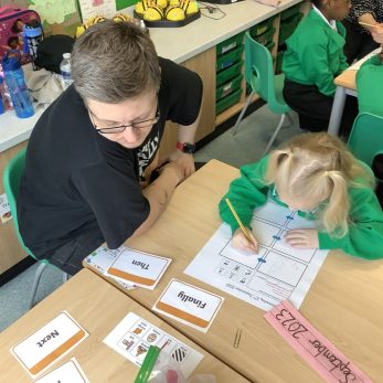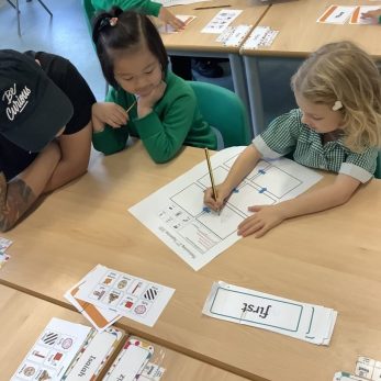 For Bring a Significant Male to School day, Year 1 created a story map for their core text ‘The Tiger Who Came to Tea’. They used time connectives and adjectives to describe and sequence each part of the story with their adults.