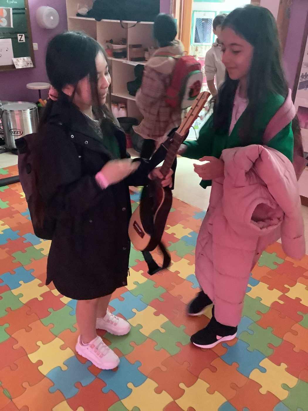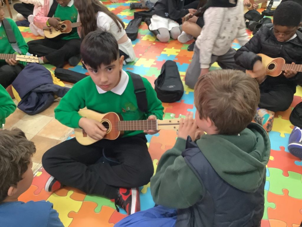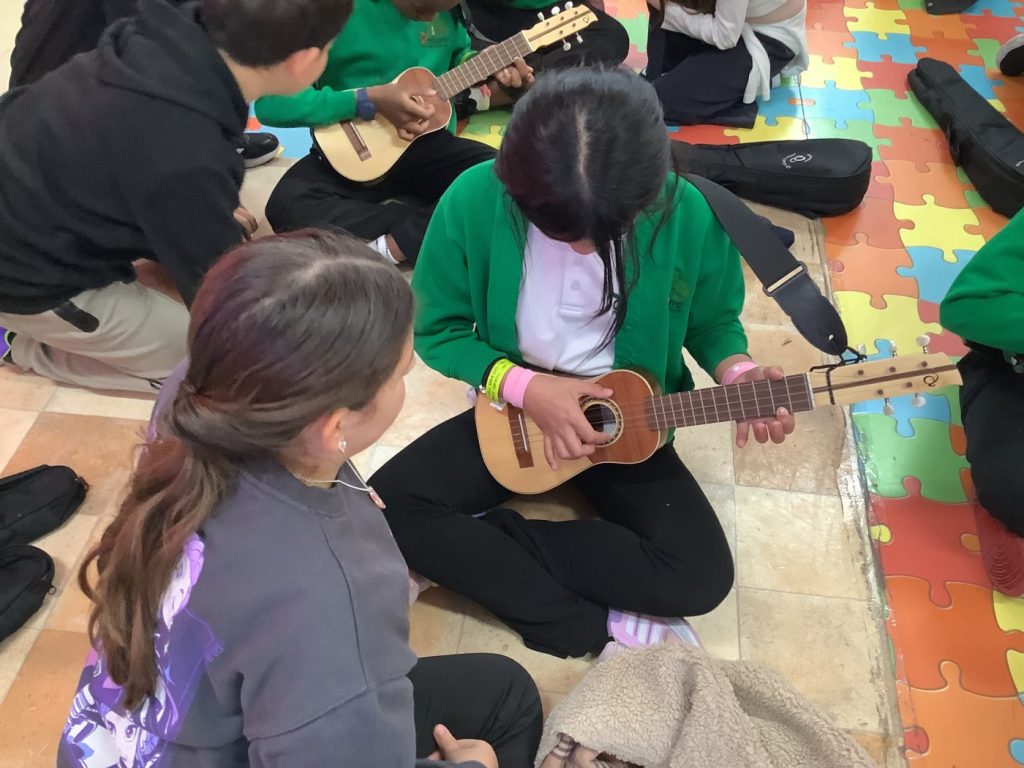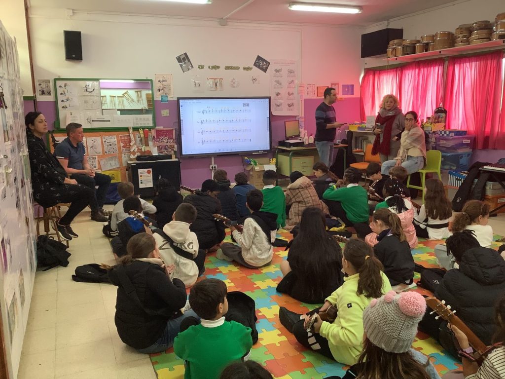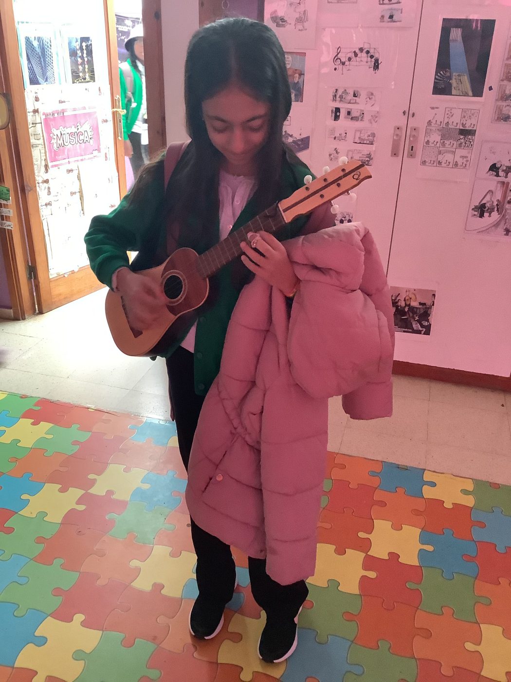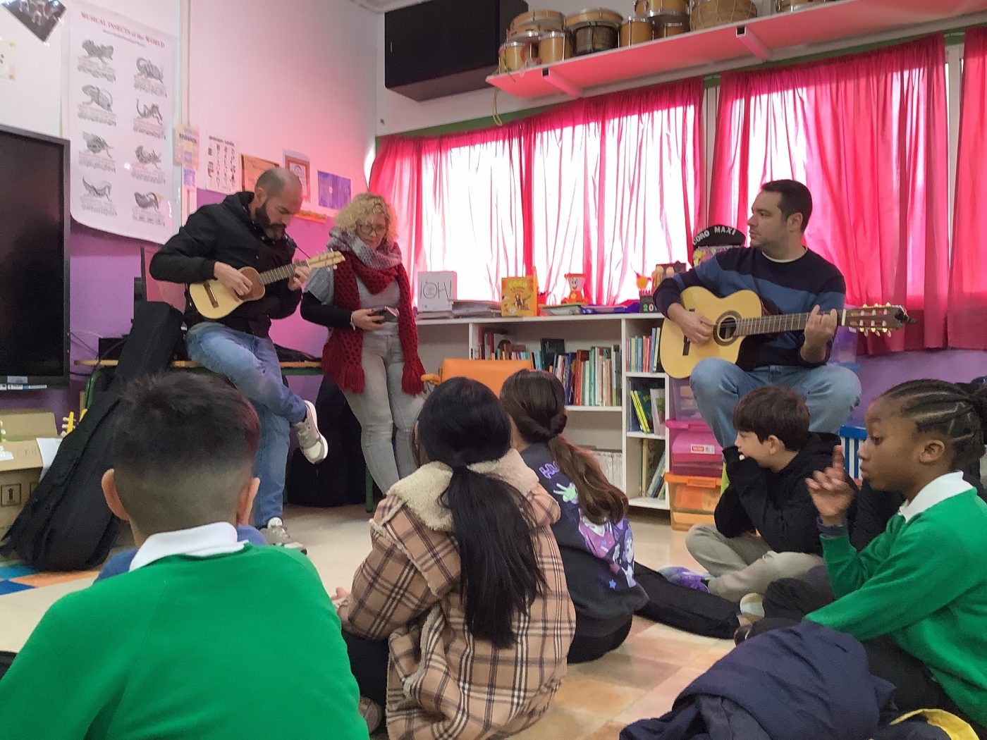 After a playground snack of tortilla española sandwiches, pupils spent time playing with their new Spanish friends before working together to create a colourful Canarian alphabet mural in the corridor. It was wonderful to see pupils communicating confidently using Spanish, “Spanglish”, gestures and smiles. We also had the opportunity to learn how to play the ‘timple’, a traditional Canarian instrument similar to a ukulele. The teachers even got to join in!