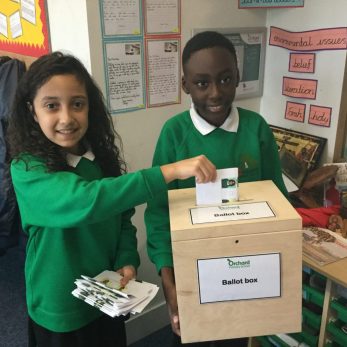 During Democracy Day, children in Years 1-6 had the opportunity to cast their own vote for Year 6 School Council Positions. After watching election presentations, the children completed a voting ballot to elect a Head Girl, Head Boy, Treasurer and Secretary to help lead our Orchard School Council this academic year.