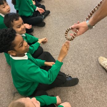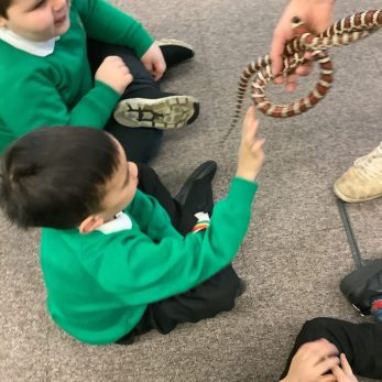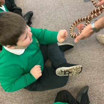 Year 2 have been learning about jobs around caring for animals. They had a visit from Zoo Lab who showed the children lots of different types of animals including geckos, scorpions and African Land Snails. The children learnt all about how to care for the animals and were even able to touch some of them!