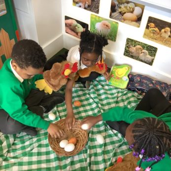EYFS have been busy taking care of their chickens in their role-play farm area. They fed their chickens and collected all the eggs they produced, sharing with one another on how the eggs can be used.