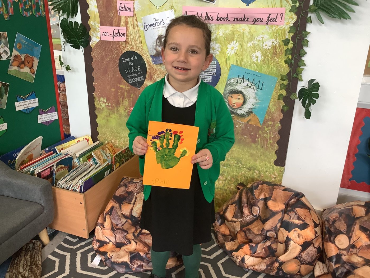 To celebrate Mother’s Day, children in EYFS made cards to give to their loved ones. They handprinted beautiful flowers at the front of their cards and wrote personal messages inside.
