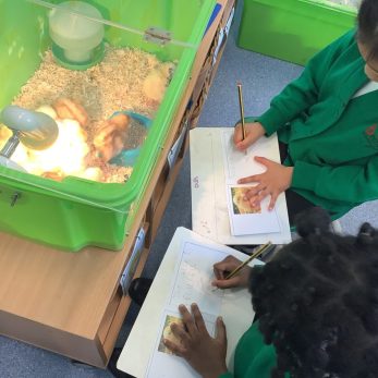 EYFS loved observing eggs hatching this week. They are excited to take great care of the chicks by reading novels and singing songs to them! They also wrote their own stories about the life-cycle of a chick.