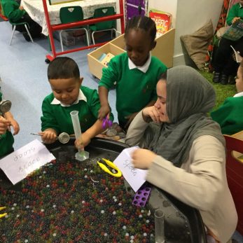 Lots of Nursery and Reception parents attended the ‘fine motor skills’ coffee morning. They discovered new and engaging activities to support their child’s fine motor development and fluency and precision when forming letters. They then had the chance to visit their child’s classroom to enjoy a range of fine motor and writing activities. Scooping the water beads with the tea strainers was a big hit!