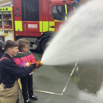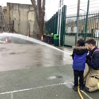 Year 1 had a special visit from our local fire fighters as part of Work and Enterprise Week. They learnt about their responsibilities and practised how to hose out water!