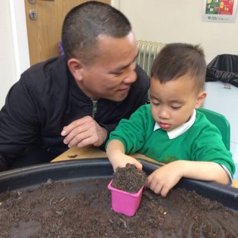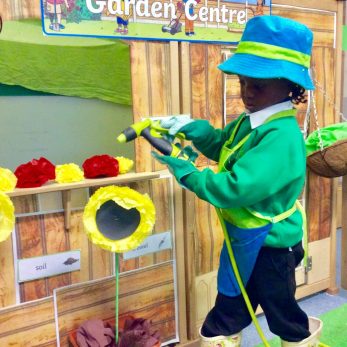 The Nursery children have been learning about ‘new life’. It was an exciting half term as the caterpillars arrived. The children were fascinated with how the caterpillars grew and waited in anticipation for them to turn into butterflies. The garden centre role play area was very busy and the children enjoyed getting in role as gardeners. During our bring a significant female day the children did some planting with their significant females which they enjoyed too!