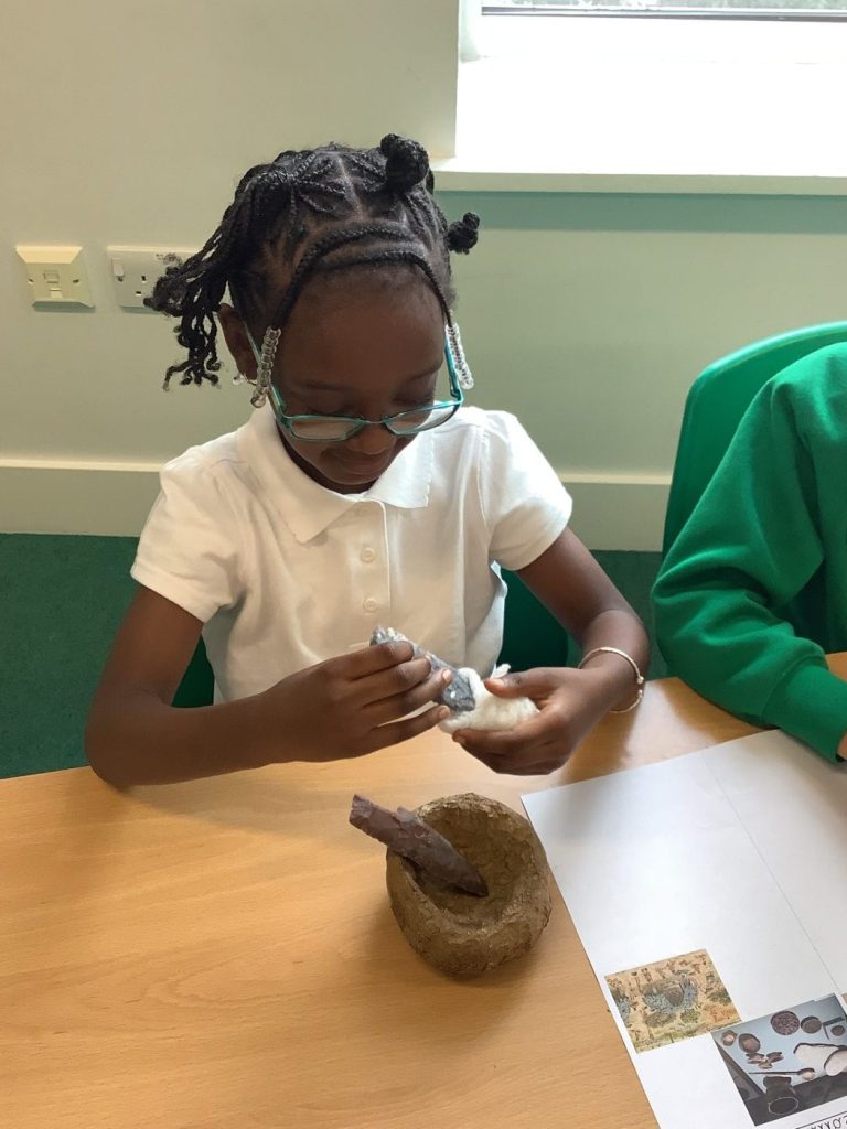 Year 3 explored Stone Age artefacts in Humanities, discussing their uses and understanding their importance.