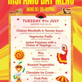 Click here to view our special lunch menu that will be served on Hispanic Day! Children are also welcome to dress in traditional clothing or in the colors red, yellow, or blue inspired by Spanish-speaking countries.