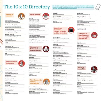 Attached is a link to the 10 x 10 web page which includes PDFs of the 10 x 10 Map and Directory – come and take part in all these fun activities!