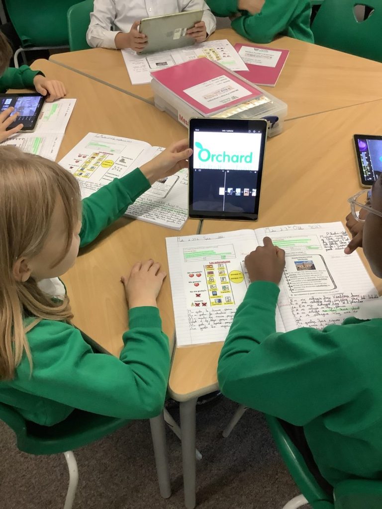 In Key Stage 2, children progressively acquire, use and apply a growing bank of vocabulary, language skills and grammatical knowledge organised around age-appropriate topics and themes, building blocks of language into more complex, fluent and authentic dialogue. Words are learnt in a multi-layered way through image, sound, action and repetition. This approach strengthens memory, making the knowledge secure enough for easy retrieval and more importantly, for application of new words in context. Regular practise in applying the knowledge to the pronunciation of new words with the same sound-written relationship is regularly undertaken. Children develop their vocabulary and expression and learn grammatical rules e.g. placement of adjectives and recognising words that are spelt differently depending on the gender of the noun.