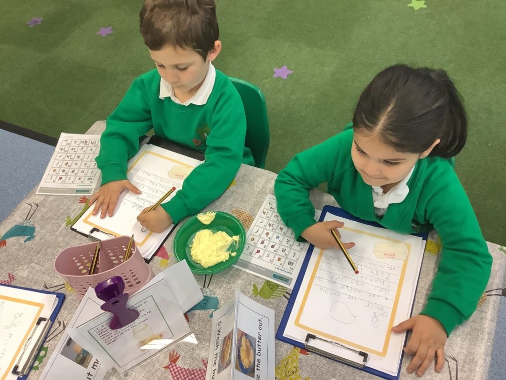 In Reception, children write daily within phonics sessions, through whole class assessment tasks, within focussed group work and in independent learning.