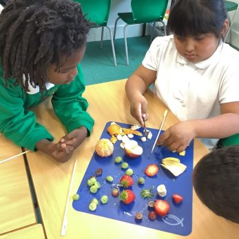 Year 5 have been learning about the importance of eating your 5 a day in PHSE. They made fruit kebabs and shared the benefits of maintaining a healthy diet.