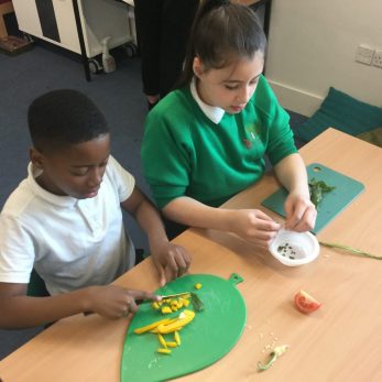 In Year 5, we were very fortunate to have a workshop delivered, where we looked at Mayan food and Mayan culture. We then, using corn and corn meal, made tortilla wraps as the Mayans would have done, and a salsa to go with it. To do this, we used vegetables that the Mayans would have grown. We learnt about the importance of maize, and also why cacao was so important and the uses that it had in Mayan times – they even used it for medicine!