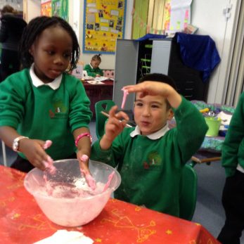 During Science Day, Reception and Nursery explored changes and materials by mixing different ingredients to make slime. The children loved getting messy while mixing, squeezing and stretching the slime and used some fantastic language to describe what they could see and feel. The EYFS slime stall at the Science Fayre was very popular!