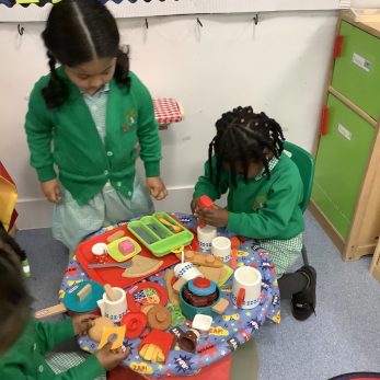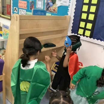 Nursery class are enjoying their new topic this term on superheroes by role playing in the superheroes’ home area. They’ve been engaging in dressing up as superheroes and proudly showing their superpowers. Some have even enhanced their communication and language skills by using their telephone to start a conversation with their superhero friends.