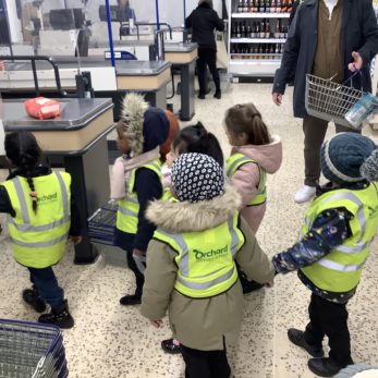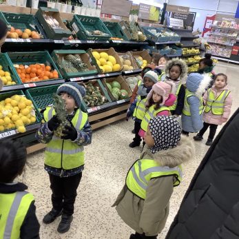 Nursery enjoyed catching the breeze as they went for a walk to their local Tesco. They explored through the different aisles whilst they hunted for ingredients for making playdough, to present and sell at the Enterprise Fayre this week. They then compared the different products found in Tesco’s to Local Green grocers.