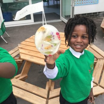 The children in the afternoon Nursery pod enjoyed experimenting with ice and nature last week. They added leaves and petals to water and explored how it had changed after a night in the freezer! They enjoyed touching the ice, watching as it slowly melted and talking about what was happening.