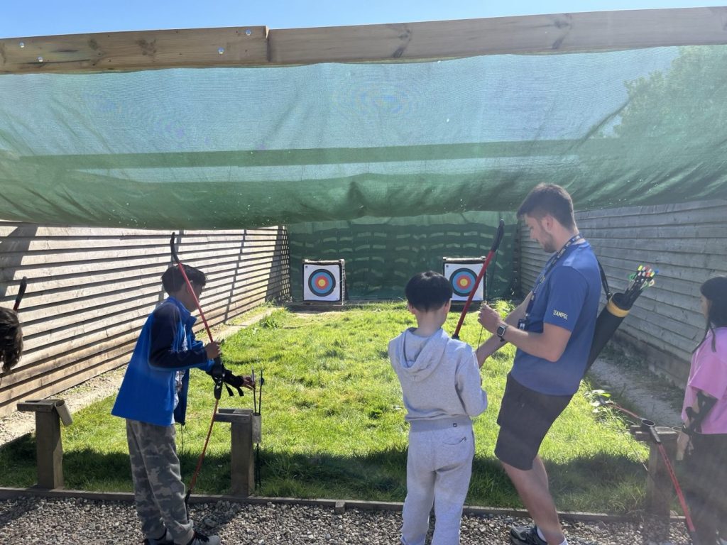 Children have already settled into their rooms and have begun their activities — archery and orienteering. Working in pairs, the children have been finding items using maps. They have developed skills such as identifying compass points, reading coordinates, and understanding what different symbols represent. They have also enjoyed archery, where they practised and developed skills such as balance, coordination, and aiming.