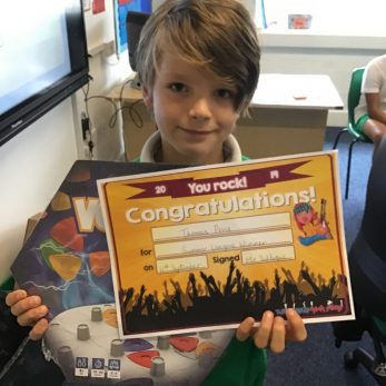 This Summer holiday, pupils from Year 2 to 6 were entered in a Times Tables Rockstars Summer League. Winners were selected from all key stages. This week the winners were announced and awarded a certificate and a maths game. Children are expected to know all the timetables to 12 x 12 by the end of Year 4 and Timetable Rockstars is an easy to use online programme available to all children from Year 2 to 6!