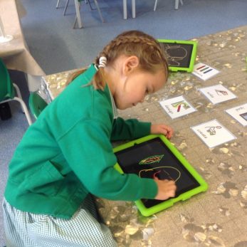 This week in Reception the children have had an exciting settling in week. The children have practised their fine motor skills using tweezers, pompoms and beads to sort objects. The children have been using glo-doodle to create self-portraits using the iPads. Outside, they have thoroughly enjoyed the sunshine and made large-scale buildings with wooden blocks. They created large towers, houses and even race cars to move around!