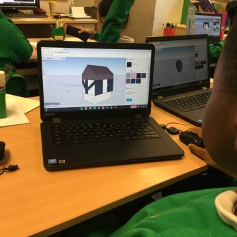 Year 5 are creating Tudor style houses using Sketch Up. They used the rectangle and push/pull tools to created pitched roofs and larger upper storey floors in the historical style. They used the line tool and paint to create the distinctive black and white wooden frames.