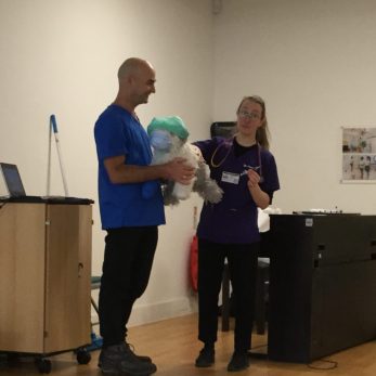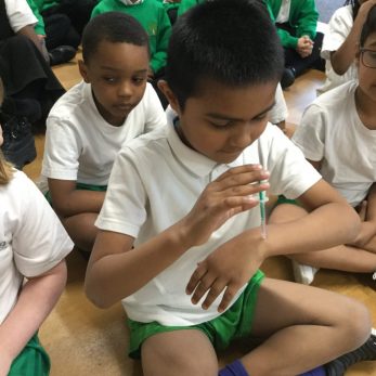 As part of work week, Year 2 were visited by a vet. He told us about all the work vets do in the local community and the kinds of animals some vets treat such as lions and tigers. The vets showed us how they would treat a poorly dog, by giving it a real injection. Then we all had a go at using the syringes (without the needles!) to see how they work.