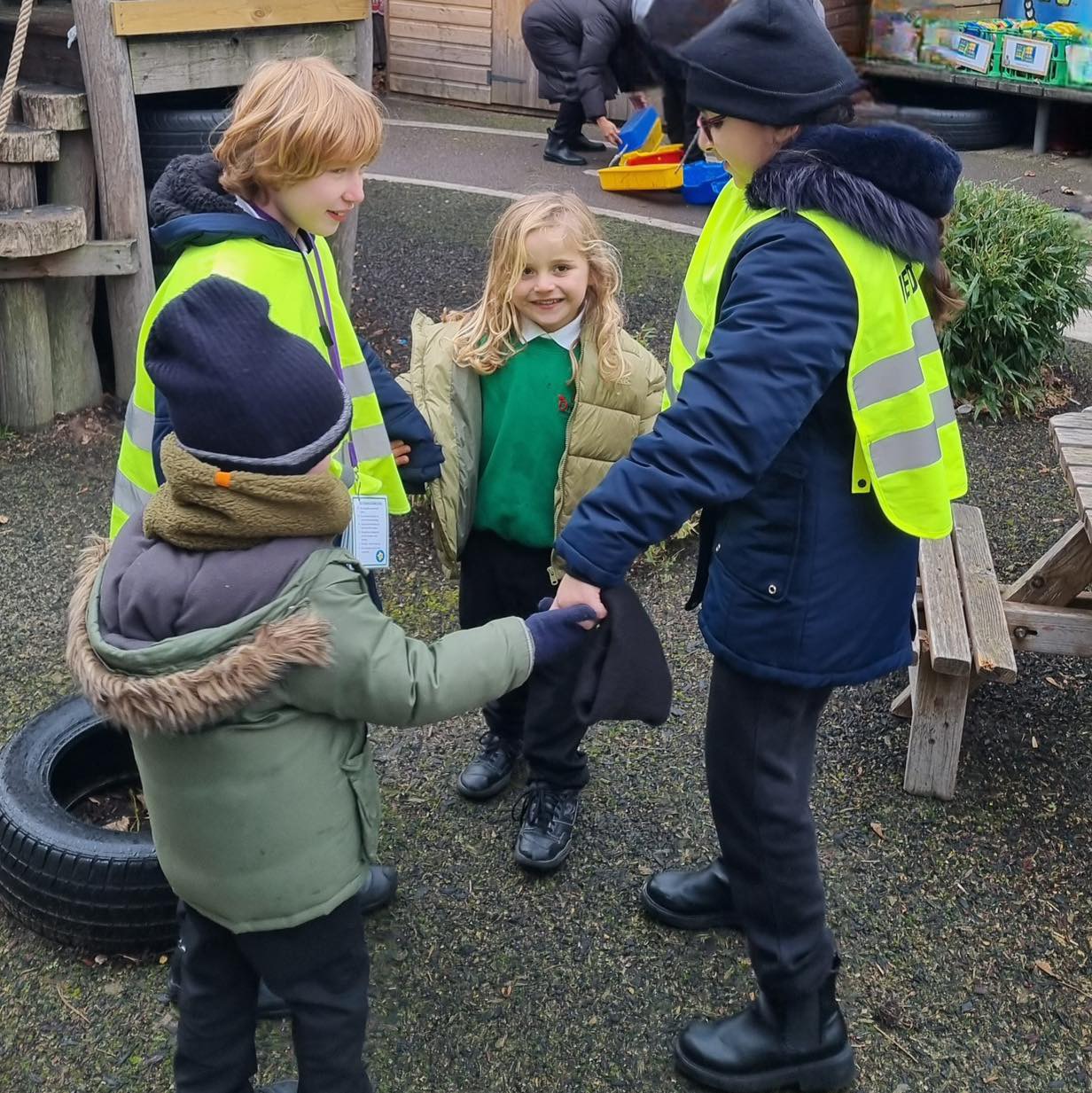 Happy new year from our Peer Mediators! They have been out in our playground every day supporting their younger peers to engage in positive and purposeful play at lunch time. They have been putting their training into action, organising a range of fun and interactive group games.
