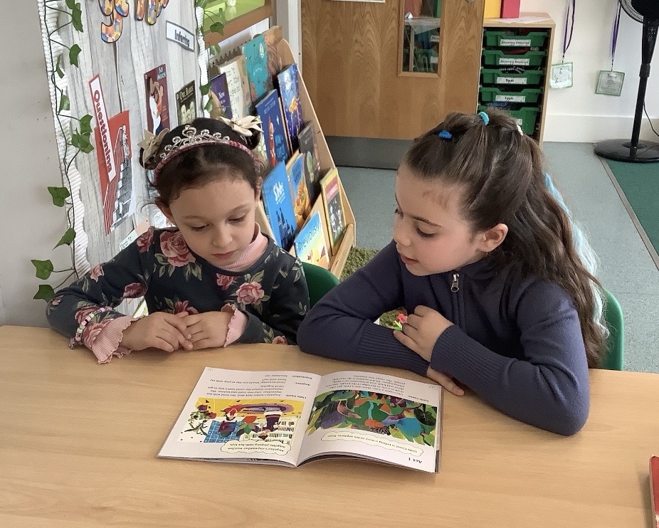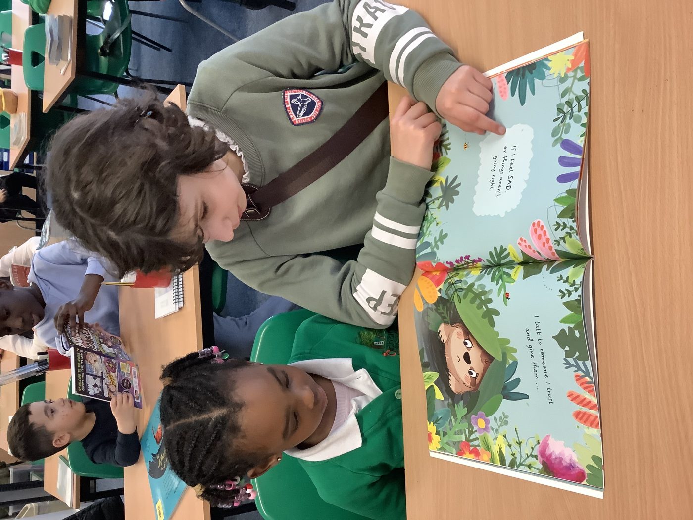 KS2 pupils enjoyed a peer reading swap with EYFS, sharing their favourite stories and exploring new books together, while in the KS1 assembly, adults shared some of their favourite books, with Miss Moosa reading an engaging extract from a Roald Dahl story.