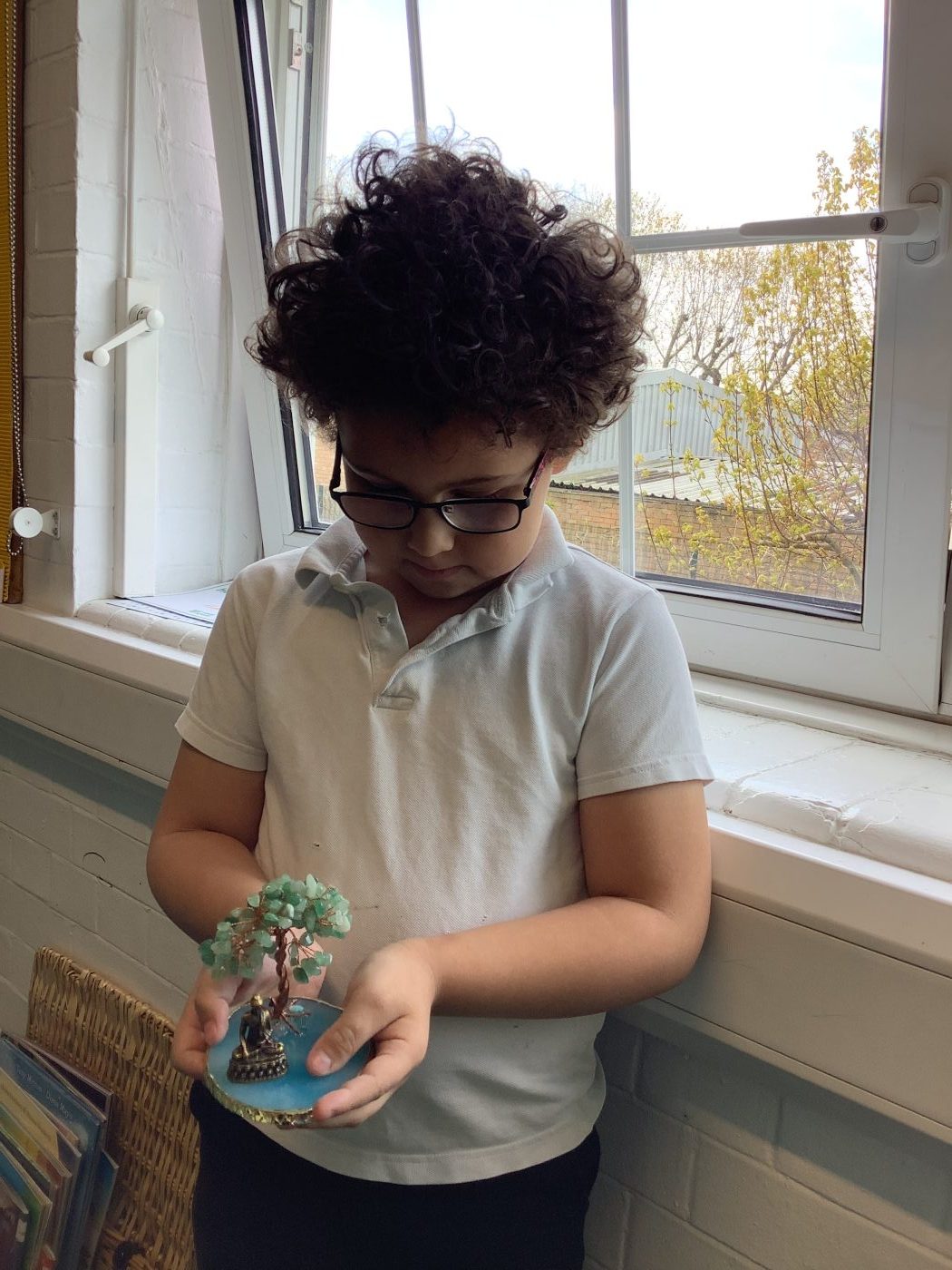 This half term, Year 2 are exploring Buddhism in their Religious Education lessons. They have used the Bodhi tree artefact to deepen their understanding of the story of Siddhartha and how he achieved enlightenment.