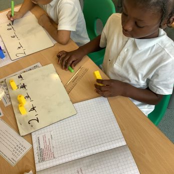 Year 2 have been finding the missing numbers in number sequences by using cubes, number lines or their timetables knowledge. They have been able to independently use these resources to find their answers.