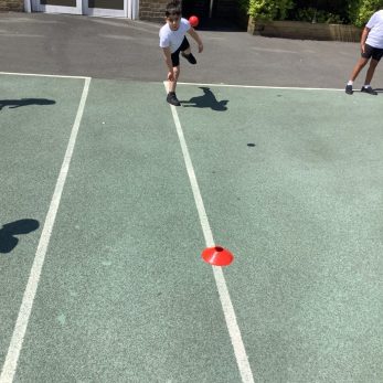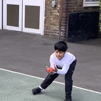 Year 2 have been refining their cricket techniques in PE. They worked on their underarm throwing, practiced bouncing a ball directly onto a cone, and improved their catching skills with two hands.