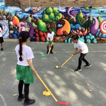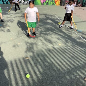 Year 3 have been refining their hockey skills in PE. They practice a variety of techniques including: dribbling with good control, keeping possession from a defender and striking towards a given target.