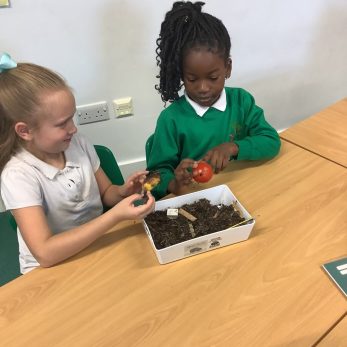 Year 3 conducted a Science experiment to investigate decomposition. They buried objects in soil and placed them in different locations to see the impact temperature and sunlight has on the decomposing process.