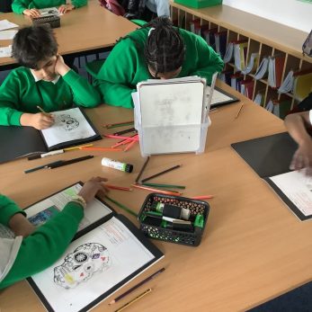 Year 5 have been studying the Mexican celebration, The Day of the Dead, in Art. They sketched out their own masks using previous research ready to create their own very soon.