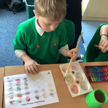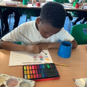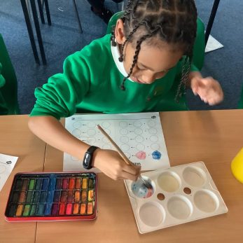 Year 5 have been studying the work of the famous artist, Georgia O’Keeffe. They experimented with paint by mixing different shades of watercolours to create vibrant tones.