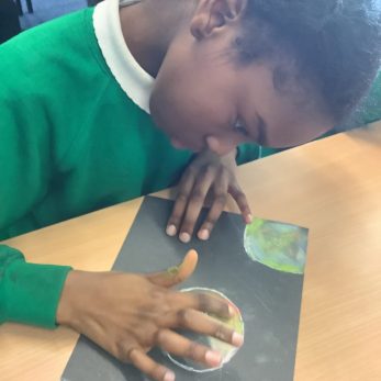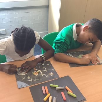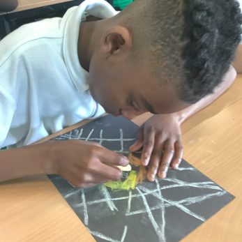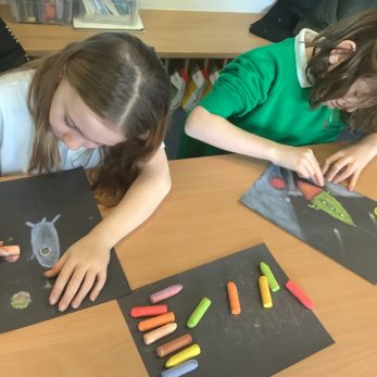 Year 5 have been looking at the amazing artwork by Peter Thorpe. Using his inspiration of space, they used different chalk skills to blend and smudge to create magnificent rocket ship pieces.
